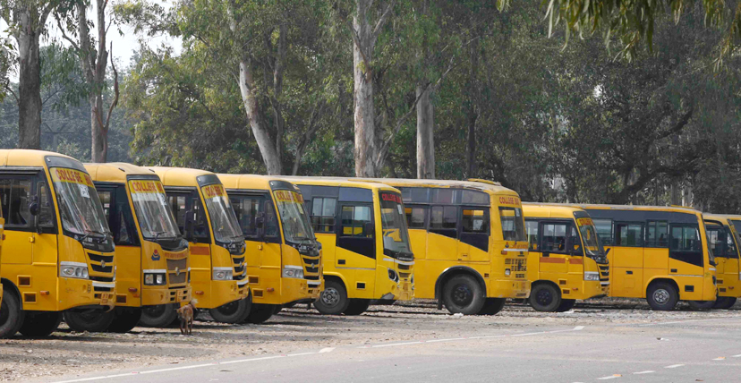 More than 35 buses operate everyday for the students and staff. The day scholars living in areas away from the campus are pick-up and dropped from their residences in this safe and secure mode of transport.