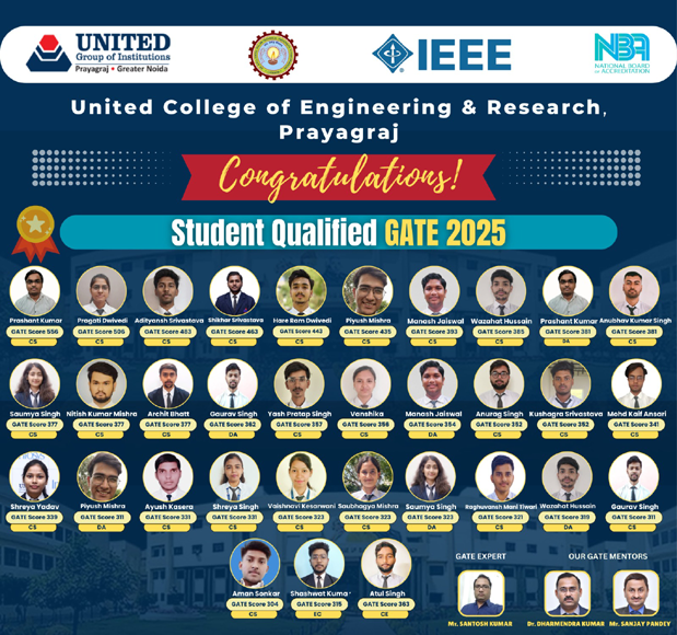 With nine well-established institutes across Prayagraj and Greater Noida, over 11,200 students, and a faculty strength of more than 750 members, the United Group has set benchmarks in technical education. The institution is proud to offer NBA-accredited courses, World Bank-recognized quality standards, and a strong alumni network of over 14,000 graduates.